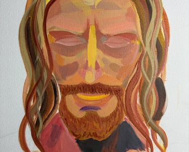 The Transparent process of my next painting. 3rd layer of face with more layers to go including adding the background.